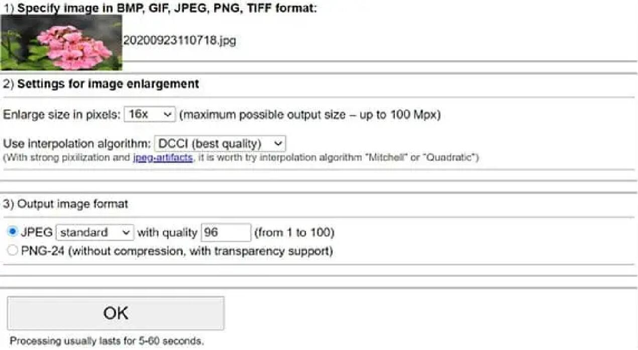 - Schritt 4: Klicken Sie auf die Schaltfläche "OK" und starten Sie das Foto online vergrößern