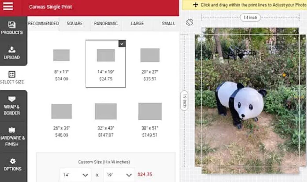 - Schritt 4: Wählen Sie die Größe und bezahlen Sie für die Anpassung