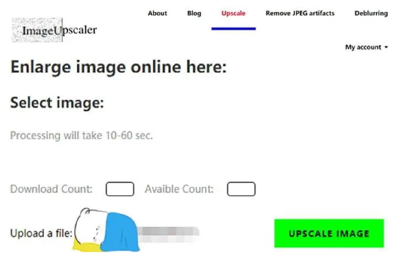 - Schritt 2: Klicken Sie auf "Upscale Image" und eine Zahl wird hinter "Download Count" und "Avaible Count" angezeigt.