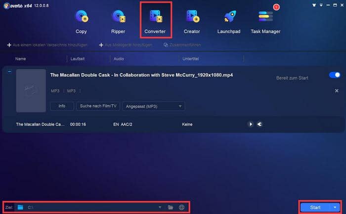 Schritt 3: Klicken Sie auf den “START” Button, um mit dem Konvertieren von Video in MP3 zu beginnen.