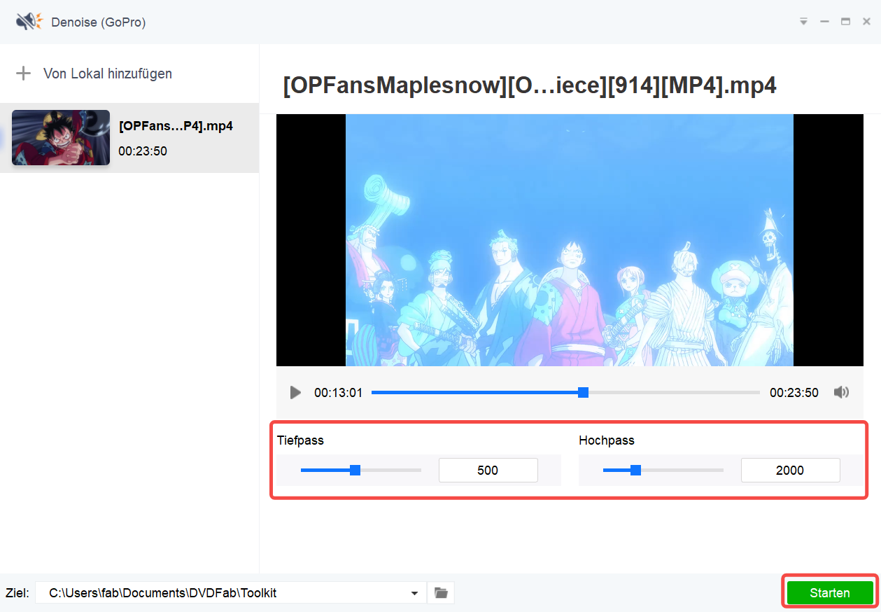 • Entrauschen Sie das Video, indem Sie den Wert von „Tiefpass  und „Hochpass“ anpassen.