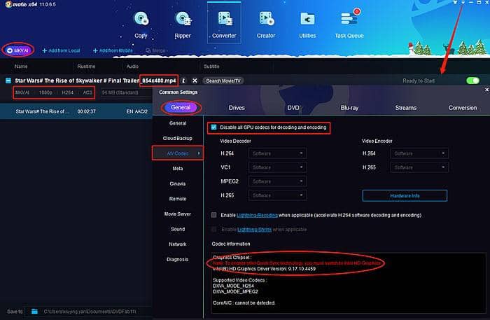 Gehen Sie auf die „Allgemeinen Einstellungen“ und setzen einen Haken bei der „Alle GPU Codes deaktivieren“ Option, um den Konvertierungsprozess zu beschleunigen, wenn man Videos upscalen und z.B. in MP4 zu MKV konvertieren will. Um das Feature AI zu aktivieren, sollten Sie sicherstellen, dass Ihr PC mit den nötigen Grafikkarten ausgestattet ist. Dieser Video Enhancer hat Voraussetzungen an die Grafik.