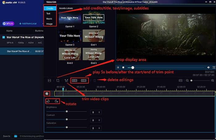 Gehen Sie zum eingebauten “Video Editor“, um das finale Video zu personalisieren. Der Video Editor ist ein ziemlich multifunktionelles Tool. Unten sehen Sie die Haupteigenschaften dieses Video Bearbeitungstools.